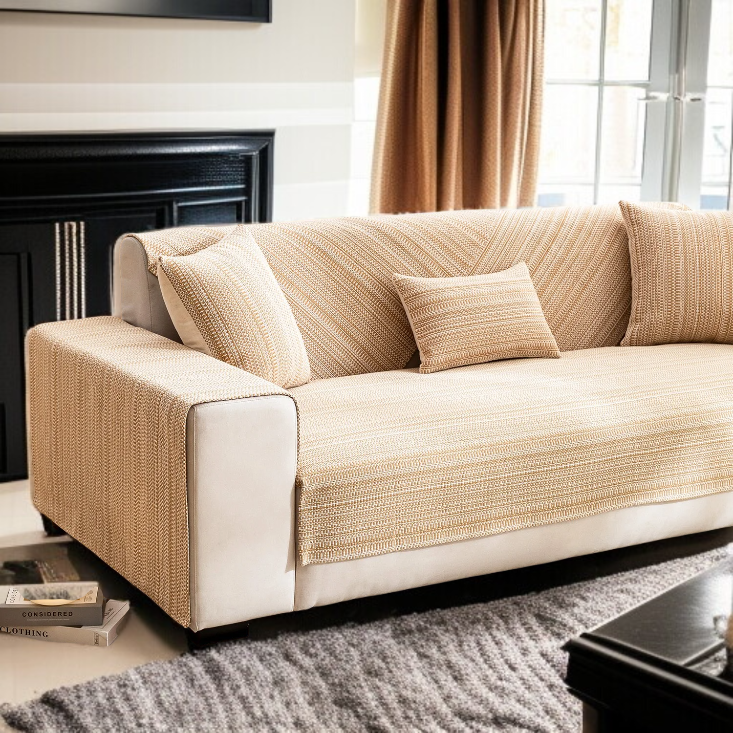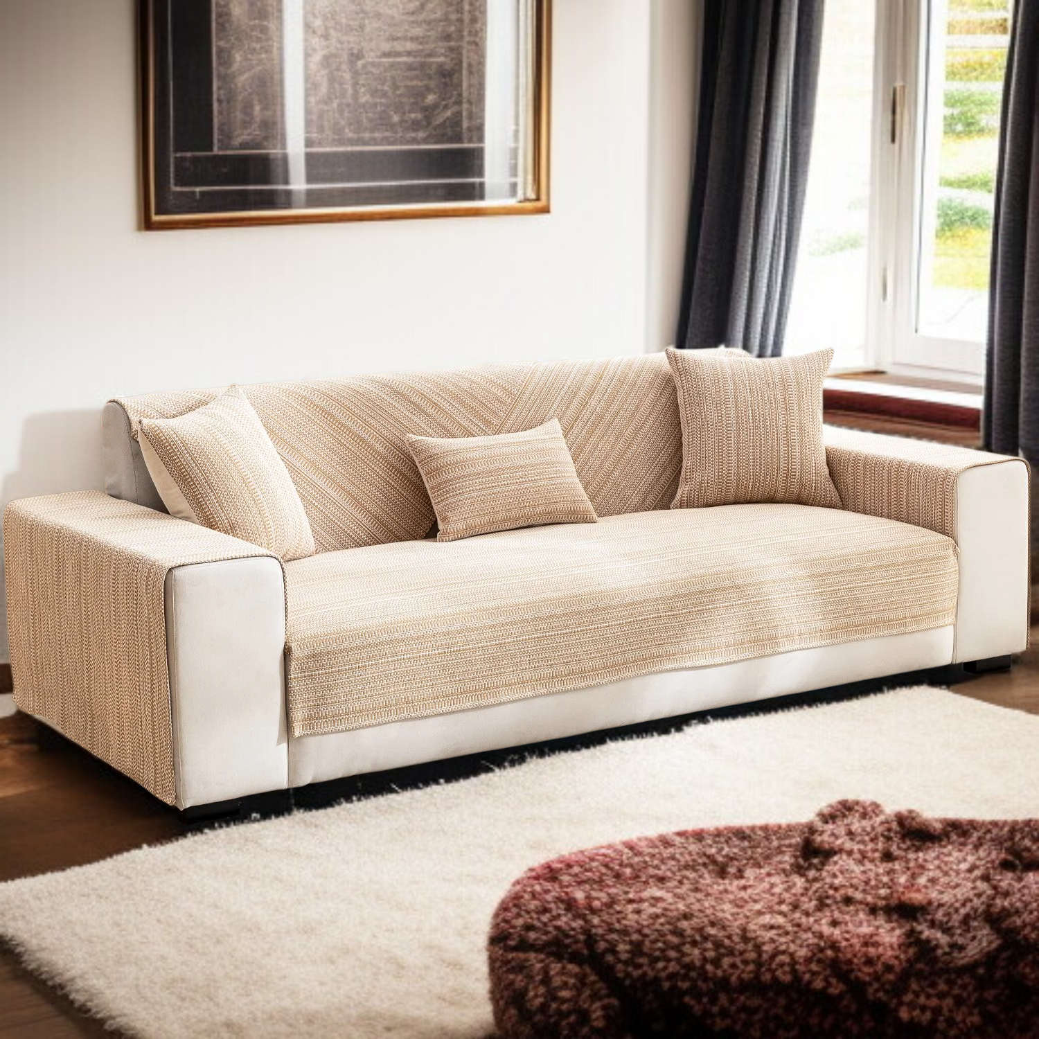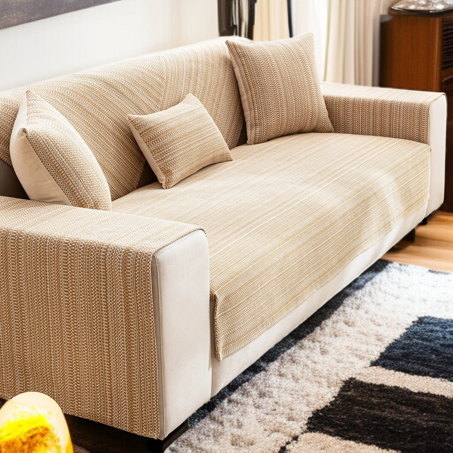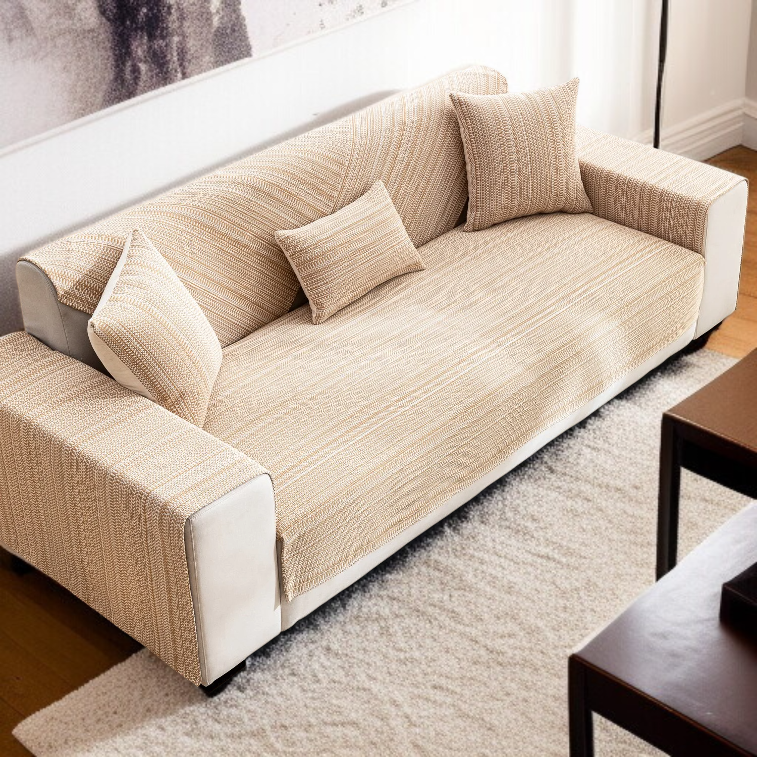 ● Crafted from high-quality cotton and linen blend, this sofa cover set offers exceptional durability and breathability, ensuring long-lasting comfort for your three-seat sofa.